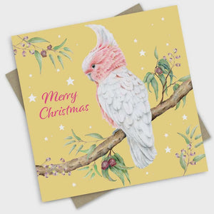 Greeting Card - Christmas Card: A Merry Pink Cockatoo