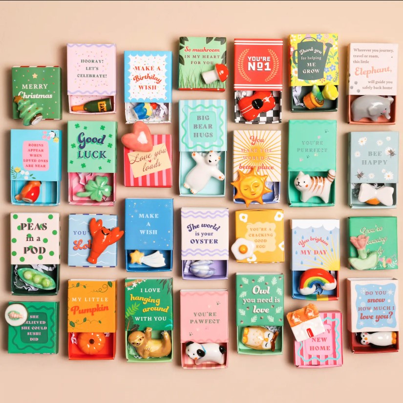 {"id":7261788078180,"title":"Tiny Matchbox Ceramic Token","handle":"tiny-matchbox-ceramic-token","description":"\u003cp\u003e\u003cspan\u003eWhether you're looking for a silly little gift or a special something to remind someone of how great they are, our ceramic tokens are the perfect choice. These tiny colourful matchboxes feature an even tinier ceramic token inside, glazed and glossy and ready to sit on a shelf or in someone's pocket. \u003c\/span\u003e\u003c\/p\u003e","published_at":"2023-09-26T15:24:20+10:00","created_at":"2023-09-26T15:24:22+10:00","vendor":"Lisa Angel","type":"Decorate","tags":["Brand_Lisa Angel","decorative accents","New","Product_Sculptures"],"price":1995,"price_min":1995,"price_max":1995,"available":true,"price_varies":false,"compare_at_price":null,"compare_at_price_min":0,"compare_at_price_max":0,"compare_at_price_varies":false,"variants":[{"id":42168650072164,"title":"Sushi","option1":"Sushi","option2":null,"option3":null,"sku":"5057616098551","requires_shipping":true,"taxable":true,"featured_image":{"id":31511908057188,"product_id":7261788078180,"position":4,"created_at":"2023-09-26T15:27:10+10:00","updated_at":"2025-12-02T15:08:13+11:00","alt":null,"width":506,"height":506,"src":"\/\/baketableandtea.com.au\/cdn\/shop\/files\/ScreenShot2023-09-26at12.32.51pm.png?v=1764648493","variant_ids":[42168650072164]},"available":true,"name":"Tiny Matchbox Ceramic Token - Sushi","public_title":"Sushi","options":["Sushi"],"price":1995,"weight":0,"compare_at_price":null,"inventory_management":"shopify","barcode":null,"featured_media":{"alt":null,"id":23805203906660,"position":4,"preview_image":{"aspect_ratio":1.0,"height":506,"width":506,"src":"\/\/baketableandtea.com.au\/cdn\/shop\/files\/ScreenShot2023-09-26at12.32.51pm.png?v=1764648493"}},"requires_selling_plan":false,"selling_plan_allocations":[]},{"id":42168650104932,"title":"Bear","option1":"Bear","option2":null,"option3":null,"sku":"5057616098568","requires_shipping":true,"taxable":true,"featured_image":{"id":31511907827812,"product_id":7261788078180,"position":6,"created_at":"2023-09-26T15:27:10+10:00","updated_at":"2025-12-02T15:08:13+11:00","alt":null,"width":506,"height":506,"src":"\/\/baketableandtea.com.au\/cdn\/shop\/files\/ScreenShot2023-09-26at12.33.10pm.png?v=1764648493","variant_ids":[42168650104932]},"available":false,"name":"Tiny Matchbox Ceramic Token - Bear","public_title":"Bear","options":["Bear"],"price":1995,"weight":0,"compare_at_price":null,"inventory_management":"shopify","barcode":null,"featured_media":{"alt":null,"id":23805203972196,"position":6,"preview_image":{"aspect_ratio":1.0,"height":506,"width":506,"src":"\/\/baketableandtea.com.au\/cdn\/shop\/files\/ScreenShot2023-09-26at12.33.10pm.png?v=1764648493"}},"requires_selling_plan":false,"selling_plan_allocations":[]},{"id":42168650137700,"title":"House","option1":"House","option2":null,"option3":null,"sku":"5057616098575","requires_shipping":true,"taxable":true,"featured_image":{"id":31511908024420,"product_id":7261788078180,"position":5,"created_at":"2023-09-26T15:27:10+10:00","updated_at":"2025-12-02T15:08:13+11:00","alt":null,"width":506,"height":506,"src":"\/\/baketableandtea.com.au\/cdn\/shop\/files\/ScreenShot2023-09-26at12.32.58pm.png?v=1764648493","variant_ids":[42168650137700]},"available":true,"name":"Tiny Matchbox Ceramic Token - House","public_title":"House","options":["House"],"price":1995,"weight":0,"compare_at_price":null,"inventory_management":"shopify","barcode":null,"featured_media":{"alt":null,"id":23805203939428,"position":5,"preview_image":{"aspect_ratio":1.0,"height":506,"width":506,"src":"\/\/baketableandtea.com.au\/cdn\/shop\/files\/ScreenShot2023-09-26at12.32.58pm.png?v=1764648493"}},"requires_selling_plan":false,"selling_plan_allocations":[]},{"id":42168650170468,"title":"Cat","option1":"Cat","option2":null,"option3":null,"sku":"5057616098582","requires_shipping":true,"taxable":true,"featured_image":{"id":31511907762276,"product_id":7261788078180,"position":10,"created_at":"2023-09-26T15:27:10+10:00","updated_at":"2025-12-02T15:08:13+11:00","alt":null,"width":506,"height":506,"src":"\/\/baketableandtea.com.au\/cdn\/shop\/files\/ScreenShot2023-09-26at12.34.06pm.png?v=1764648493","variant_ids":[42168650170468]},"available":true,"name":"Tiny Matchbox Ceramic Token - Cat","public_title":"Cat","options":["Cat"],"price":1995,"weight":0,"compare_at_price":null,"inventory_management":"shopify","barcode":null,"featured_media":{"alt":null,"id":23805204136036,"position":10,"preview_image":{"aspect_ratio":1.0,"height":506,"width":506,"src":"\/\/baketableandtea.com.au\/cdn\/shop\/files\/ScreenShot2023-09-26at12.34.06pm.png?v=1764648493"}},"requires_selling_plan":false,"selling_plan_allocations":[]},{"id":42168650203236,"title":"Robin","option1":"Robin","option2":null,"option3":null,"sku":"5057616098605","requires_shipping":true,"taxable":true,"featured_image":{"id":31511907893348,"product_id":7261788078180,"position":2,"created_at":"2023-09-26T15:27:09+10:00","updated_at":"2025-12-02T15:08:13+11:00","alt":null,"width":506,"height":506,"src":"\/\/baketableandtea.com.au\/cdn\/shop\/files\/ScreenShot2023-09-26at12.32.20pm.png?v=1764648493","variant_ids":[42168650203236]},"available":true,"name":"Tiny Matchbox Ceramic Token - Robin","public_title":"Robin","options":["Robin"],"price":1995,"weight":0,"compare_at_price":null,"inventory_management":"shopify","barcode":null,"featured_media":{"alt":null,"id":23805203841124,"position":2,"preview_image":{"aspect_ratio":1.0,"height":506,"width":506,"src":"\/\/baketableandtea.com.au\/cdn\/shop\/files\/ScreenShot2023-09-26at12.32.20pm.png?v=1764648493"}},"requires_selling_plan":false,"selling_plan_allocations":[]},{"id":42168650236004,"title":"Champagne","option1":"Champagne","option2":null,"option3":null,"sku":"5057616098612","requires_shipping":true,"taxable":true,"featured_image":{"id":31511907958884,"product_id":7261788078180,"position":3,"created_at":"2023-09-26T15:27:10+10:00","updated