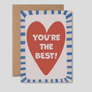 Greeting Card - You’re the Best Red Heart, Blue Stripes