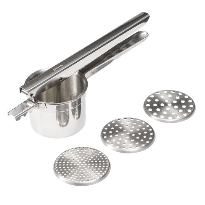 {"id":8341670756452,"title":"3 in 1 Potato Ricer Stainless Steel","handle":"3-in-1-potato-ricer-stainless-steel","description":"\u003cp\u003e\u003cspan\u003eSVNA brings together professional quality materials and award-winning design to offer smarter kitchenware for the modern cook.\u003c\/span\u003e\u003cbr\u003e\u003cspan\u003eCreate and prep delicious meals with this 3 in 1 Stainless Steel Potato Ricer.\u003c\/span\u003e\u003cbr\u003e\u003cspan\u003eMade from 18\/8 premium stainless steel, this multifunctional potato ricing tool features precision pressing to mash, drain and squeeze your favourite fruits and vegetables with consistency.\u003c\/span\u003e\u003cbr\u003e\u003cspan\u003eSwitch between the three removable discs for coarse, medium and fine mash textures.\u003c\/span\u003e\u003cbr\u003e\u003cspan\u003eGrooved arm rests on the bowl for extra stability.\u003c\/span\u003e\u003cbr\u003e\u003cspan\u003eEnrich your kitchen with the 3 in 1 Stainless Steel Potato Ricer from SVNA.\u003c\/span\u003e\u003c\/p\u003e\n\u003cp\u003e \u003c\/p\u003e\n\u003cp\u003e\u003cspan\u003ePremium brushed 18\/8 stainless steel. Holds 1-2 medium sized potatoes. Switch between discs for fine, medium or coarse textures. Grooved arm extension rests on your bowl for extra stability. Discs remove from chamber.\u003c\/span\u003e\u003c\/p\u003e","published_at":"2026-01-14T13:34:36+11:00","created_at":"2026-01-14T13:34:36+11:00","vendor":"SVNA","type":"Kitchen Utensils","tags":["Brand_SVNA","kitchen accessories","kitchen tool","Kitchenware","New","puree"],"price":6999,"price_min":6999,"price_max":6999,"available":true,"price_varies":false,"compare_at_price":null,"compare_at_price_min":0,"compare_at_price_max":0,"compare_at_price_varies":false,"variants":[{"id":47702217424996,"title":"Default Title","option1":"Default Title","option2":null,"option3":null,"sku":"9345869302423","requires_shipping":true,"taxable":true,"featured_image":null,"available":true,"name":"3 in 1 Potato Ricer Stainless Steel","public_title":null,"options":["Default Title"],"price":6999,"weight":0,"compare_at_price":null,"inventory_management":"shopify","barcode":null,"requires_selling_plan":false,"selling_plan_allocations":[]}],"images":["\/\/baketableandtea.com.au\/cdn\/shop\/files\/g0000044_2.jpg?v=1768358079"],"featured_image":"\/\/baketableandtea.com.au\/cdn\/shop\/files\/g0000044_2.jpg?v=1768358079","options":["Title"],"media":[{"alt":null,"id":31241621241956,"position":1,"preview_image":{"aspect_ratio":1.0,"height":700,"width":700,"src":"\/\/baketableandtea.com.au\/cdn\/shop\/files\/g0000044_2.jpg?v=1768358079"},"aspect_ratio":1.0,"height":700,"media_type":"image","src":"\/\/baketableandtea.com.au\/cdn\/shop\/files\/g0000044_2.jpg?v=1768358079","width":700}],"requires_selling_plan":false,"selling_plan_groups":[],"content":"\u003cp\u003e\u003cspan\u003eSVNA brings together professional quality materials and award-winning design to offer smarter kitchenware for the modern cook.\u003c\/span\u003e\u003cbr\u003e\u003cspan\u003eCreate and prep delicious meals with this 3 in 1 Stainless Steel Potato Ricer.\u003c\/span\u003e\u003cbr\u003e\u003cspan\u003eMade from 18\/8 premium stainless steel, this multifunctional potato ricing tool features precision pressing to mash, drain and squeeze your favourite fruits and vegetables with consistency.\u003c\/span\u003e\u003cbr\u003e\u003cspan\u003eSwitch between the three removable discs for coarse, medium and fine mash textures.\u003c\/span\u003e\u003cbr\u003e\u003cspan\u003eGrooved arm rests on the bowl for extra stability.\u003c\/span\u003e\u003cbr\u003e\u003cspan\u003eEnrich your kitchen with the 3 in 1 Stainless Steel Potato Ricer from SVNA.\u003c\/span\u003e\u003c\/p\u003e\n\u003cp\u003e \u003c\/p\u003e\n\u003cp\u003e\u003cspan\u003ePremium brushed 18\/8 stainless steel. Holds 1-2 medium sized potatoes. Switch between discs for fine, medium or coarse textures. Grooved arm extension rests on your bowl for extra stability. Discs remove from chamber.\u003c\/span\u003e\u003c\/p\u003e"}