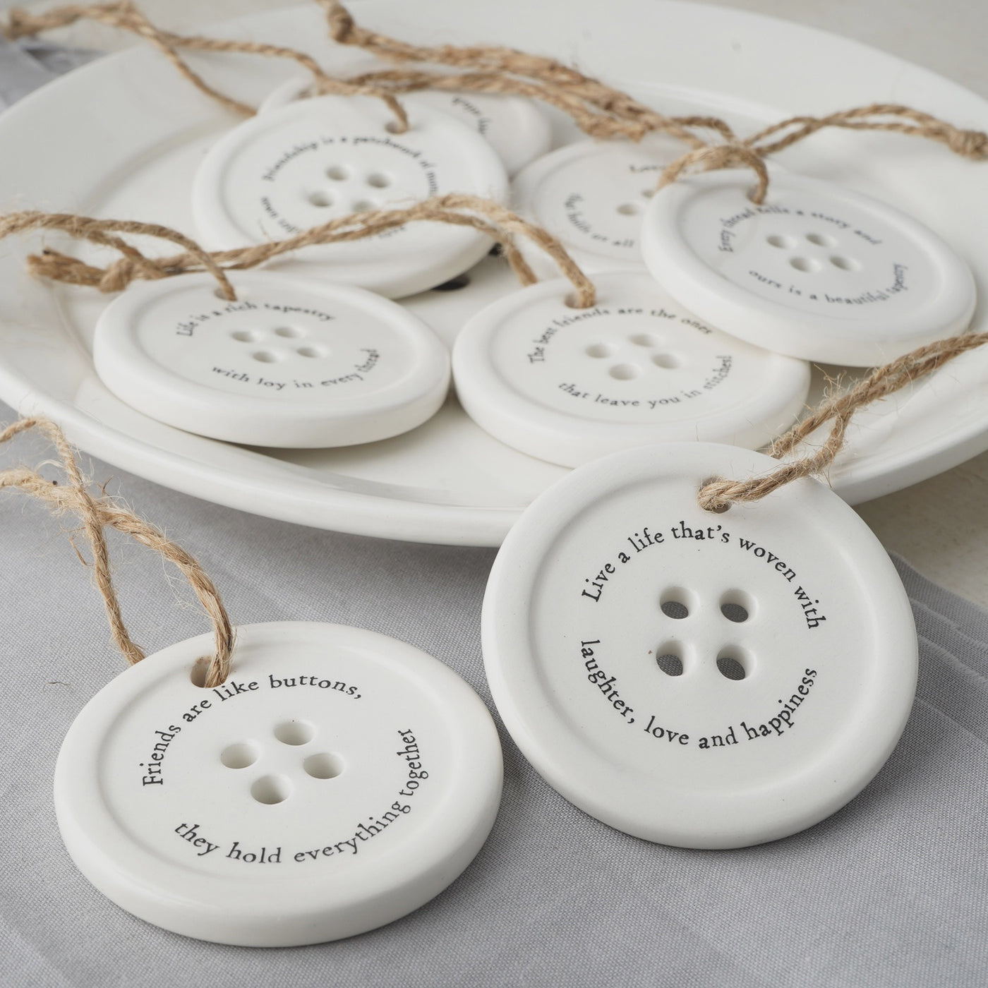 {"id":8304178004068,"title":"Ceramic Button Hanger Assorted Designs","handle":"ceramic-button-hanger-assorted-designs","description":"\u003cp\u003e\u003cstrong\u003eSOLD INDIVIDUALLY\u003c\/strong\u003e\u003c\/p\u003e\n\u003cp\u003e\u003cspan\u003eIntroducing our 8 Assorted Button-Style Hanging Decorations – Mixed Slogan Designs – Giftable Keepsakes\u003c\/span\u003e\u003c\/p\u003e\n\u003cp\u003e\u003cspan\u003eAdd charm and inspiration to any space with this delightful ceramic display dish containing 8 assorted button-style hanging decorations, each featuring its own unique slogan. \u003c\/span\u003e\u003c\/p\u003e\n\u003cp\u003e \u003c\/p\u003e\n\u003cp\u003e\u003cspan\u003eSlogans Include - - Life Is A Rich Tapestry With Joy In Every Thread - Love Is The Thread That Holds Us All Together - Live A Life That's Woven With Laughter, Love And Happiness - Friendship Is A Patchwork Of Moments Sewn Together With Love\u003c\/span\u003e\u003c\/p\u003e\n\u003cp\u003e \u003c\/p\u003e\n\u003cp\u003e\u003cspan\u003ePerfect as thoughtful gifts, tree decorations, or heartfelt keepsakes, these ceramic hangers bring warmth and character wherever they’re placed.\u003c\/span\u003e\u003c\/p\u003e\n\u003cp\u003e \u003c\/p\u003e\n\u003cp\u003e \u003c\/p\u003e","published_at":"2025-12-12T09:46:20+11:00","created_at":"2025-12-12T09:46:20+11:00","vendor":"CGB Giftware","type":"Giftware","tags":["Brand_CGB Giftware","decorative accents","New","Product_Ornaments"],"price":1695,"price_min":1695,"price_max":1695,"available":true,"price_varies":false,"compare_at_price":null,"compare_at_price_min":0,"compare_at_price_max":0,"compare_at_price_varies":false,"variants":[{"id":47512301600868,"title":"Default Title","option1":"Default Title","option2":null,"option3":null,"sku":"5034142744299","requires_shipping":true,"taxable":true,"featured_image":null,"available":true,"name":"Ceramic Button Hanger Assorted Designs","public_title":null,"options":["Default Title"],"price":1695,"weight":0,"compare_at_price":null,"inventory_management":"shopify","barcode":null,"requires_selling_plan":false,"selling_plan_allocations":[]}],"images":["\/\/baketableandtea.com.au\/cdn\/shop\/files\/4a1c5d63974c2e2cf67193d032aa5fe5078594c2fb2df6bf36825e6d075055a3-jpeg.jpg?v=1765493182"],"featured_image":"\/\/baketableandtea.com.au\/cdn\/shop\/files\/4a1c5d63974c2e2cf67193d032aa5fe5078594c2fb2df6bf36825e6d075055a3-jpeg.jpg?v=1765493182","options":["Title"],"media":[{"alt":null,"id":30868029800548,"position":1,"preview_image":{"aspect_ratio":1.0,"height":1402,"width":1402,"src":"\/\/baketableandtea.com.au\/cdn\/shop\/files\/4a1c5d63974c2e2cf67193d032aa5fe5078594c2fb2df6bf36825e6d075055a3-jpeg.jpg?v=1765493182"},"aspect_ratio":1.0,"height":1402,"media_type":"image","src":"\/\/baketableandtea.com.au\/cdn\/shop\/files\/4a1c5d63974c2e2cf67193d032aa5fe5078594c2fb2df6bf36825e6d075055a3-jpeg.jpg?v=1765493182","width":1402}],"requires_selling_plan":false,"selling_plan_groups":[],"content":"\u003cp\u003e\u003cstrong\u003eSOLD INDIVIDUALLY\u003c\/strong\u003e\u003c\/p\u003e\n\u003cp\u003e\u003cspan\u003eIntroducing our 8 Assorted Button-Style Hanging Decorations – Mixed Slogan Designs – Giftable Keepsakes\u003c\/span\u003e\u003c\/p\u003e\n\u003cp\u003e\u003cspan\u003eAdd charm and inspiration to any space with this delightful ceramic display dish containing 8 assorted button-style hanging decorations, each featuring its own unique slogan. \u003c\/span\u003e\u003c\/p\u003e\n\u003cp\u003e \u003c\/p\u003e\n\u003cp\u003e\u003cspan\u003eSlogans Include - - Life Is A Rich Tapestry With Joy In Every Thread - Love Is The Thread That Holds Us All Together - Live A Life That's Woven With Laughter, Love And Happiness - Friendship Is A Patchwork Of Moments Sewn Together With Love\u003c\/span\u003e\u003c\/p\u003e\n\u003cp\u003e \u003c\/p\u003e\n\u003cp\u003e\u003cspan\u003ePerfect as thoughtful gifts, tree decorations, or heartfelt keepsakes, these ceramic hangers bring warmth and character wherever they’re placed.\u003c\/span\u003e\u003c\/p\u003e\n\u003cp\u003e \u003c\/p\u003e\n\u003cp\u003e \u003c\/p\u003e"}